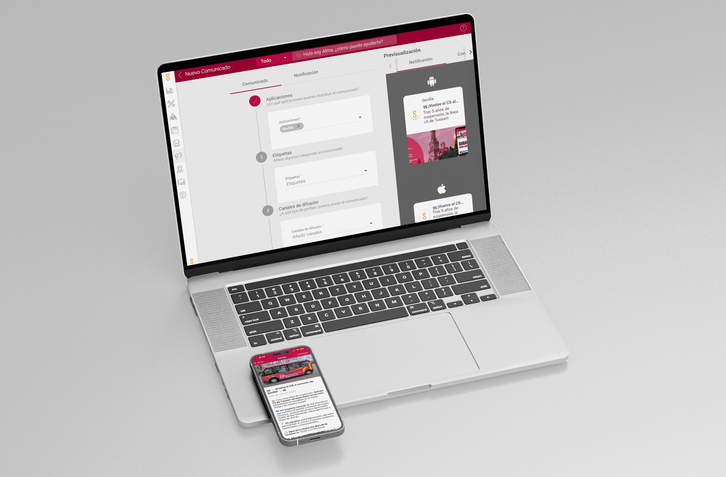 Actúa como un centro de control único donde se crean los contenidos una sola vez y se distribuyen coherentemente a Apps móviles, portales Web, Redes Sociales y asistentes virtuales, asegurando que el mensaje correcto llegue a la persona adecuada, en el momento justo.